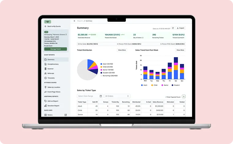 Make smarter decisions with built-in audience reports, sales analytics, and attendance data.